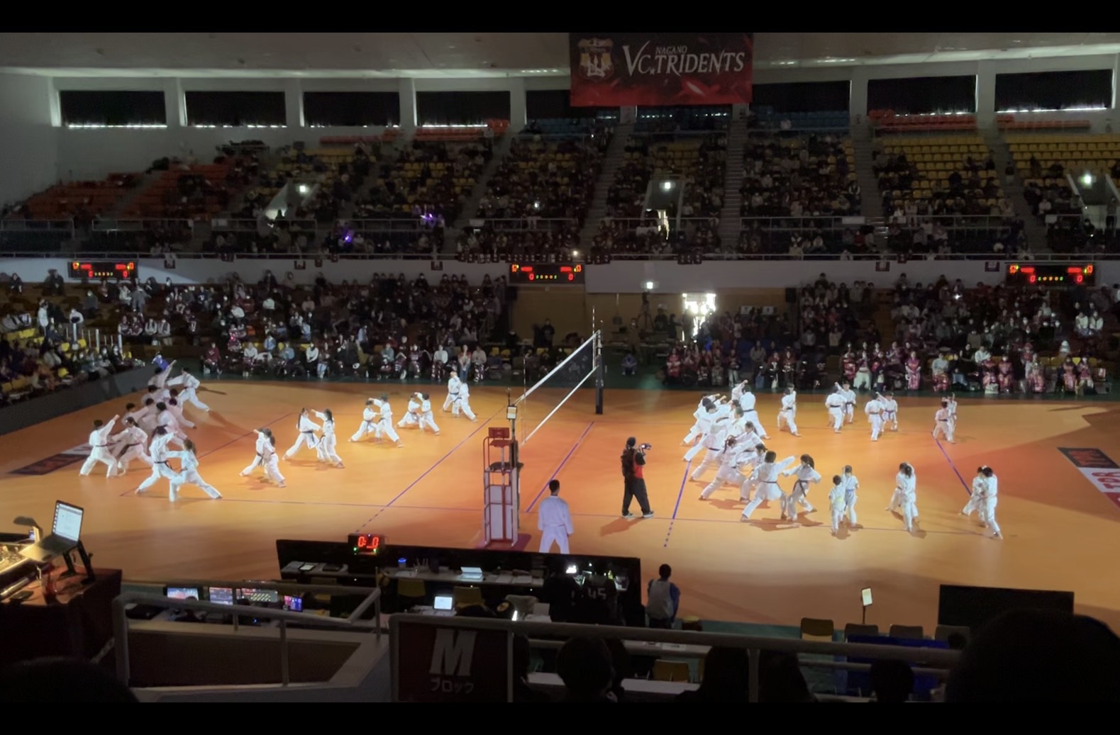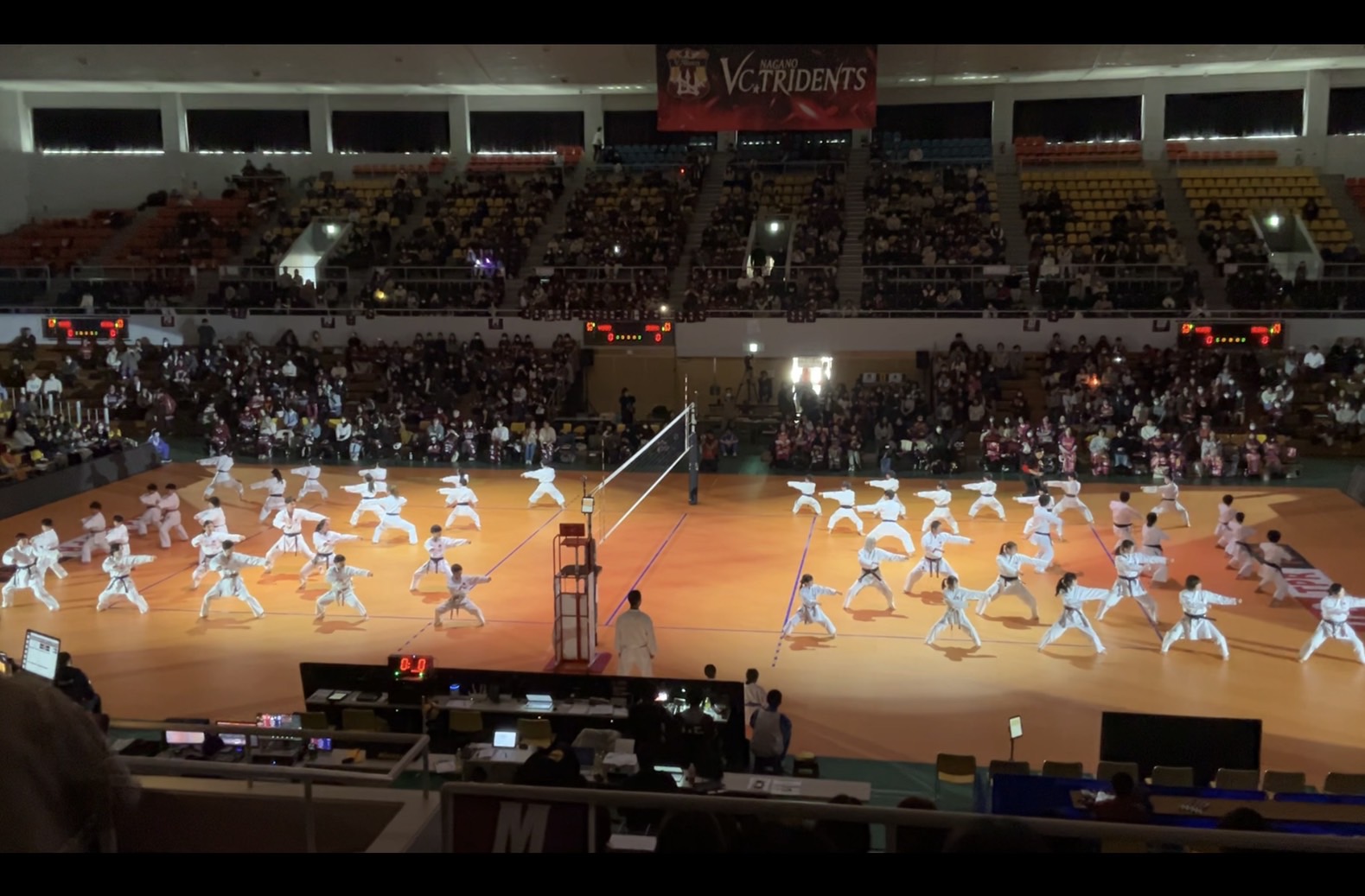 SVリーグで演武 2026年3月8日にエア・ウォーターアリーナ(松本総合体育館)で開催されたバレーボールSVリーグ、VC長野トライデンツvsJ東京グレートベアーズのハーフタイムに、中信地区や黒姫支部などの県内会員が空手演武を行った。