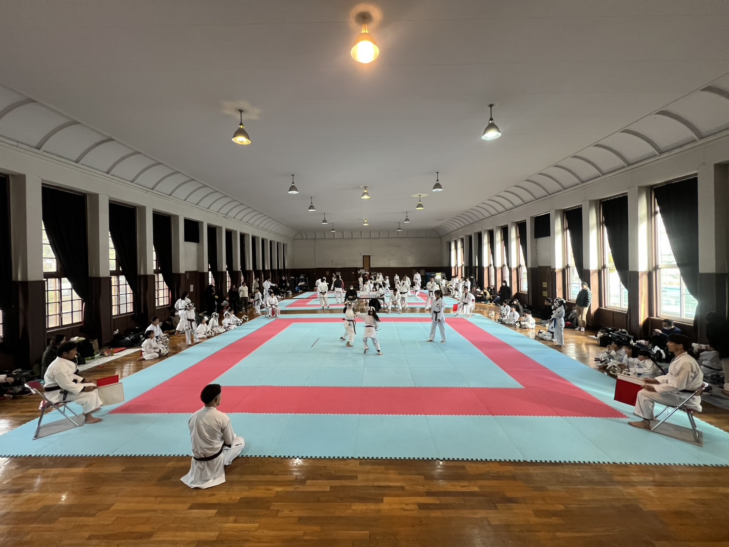 2024/02/11組手強化練習・審判講習会・一般講習会開催 2月11日諏訪市武道館において組手強化練習、審判講習会、一般講習会が開催されました。 100名を超える県内会員が参加し汗を流しました。 ↓試合形式練習及び審判講習の様子