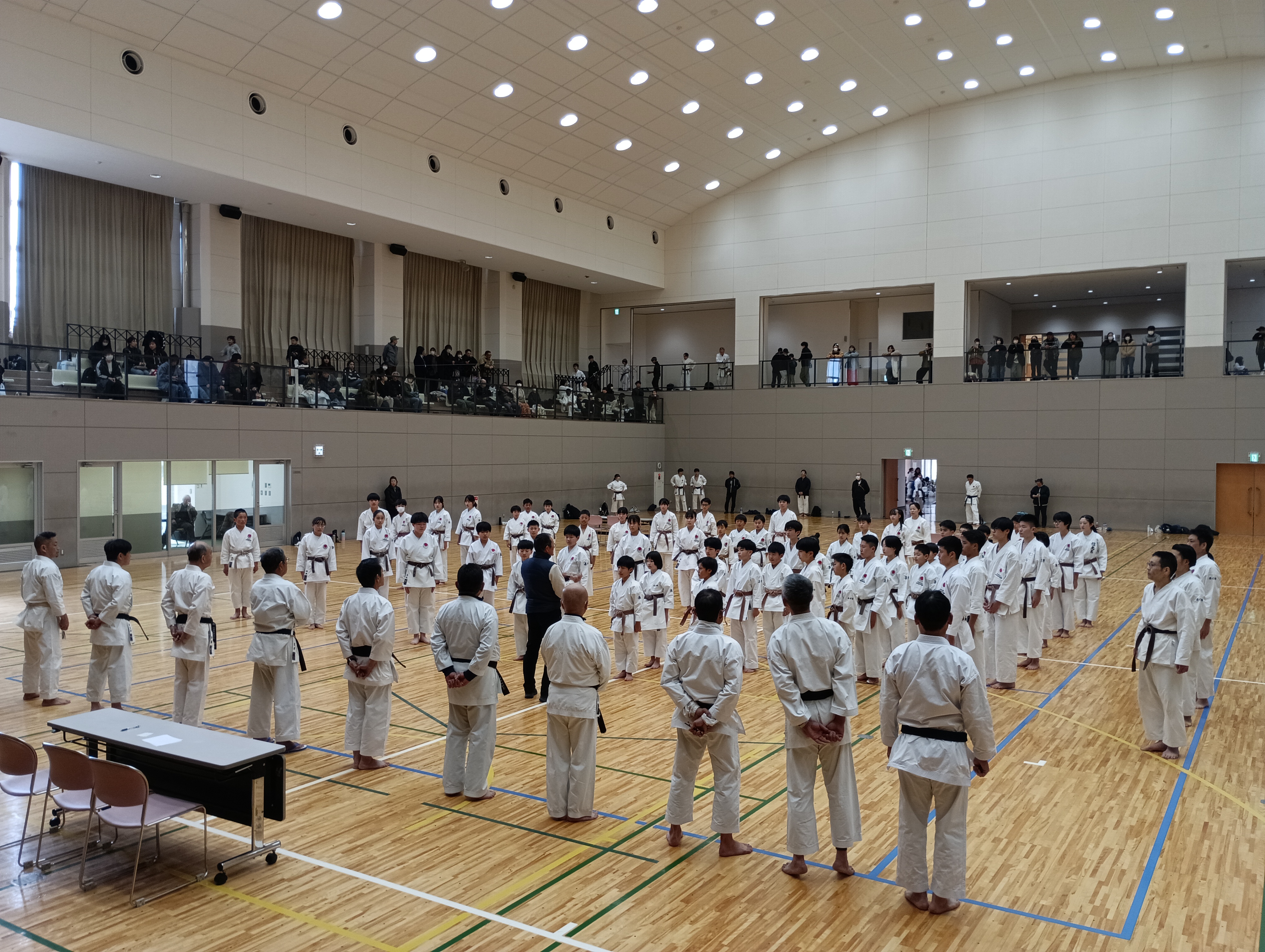 2023/02/12 組手強化練習・審判講習会開催 2月12日諏訪市武道館において組手強化練習及び審判講習会を開催いたしました。 また、午後には県本部師範会による「観空小」の形講習が追加開催されました。 午前中は少年から一般まで組手練習。↓ 午後は審判講習会を兼ねて試合形式での練習。↓ 形講習会の様子。今回は油井先生による「観空小」↓